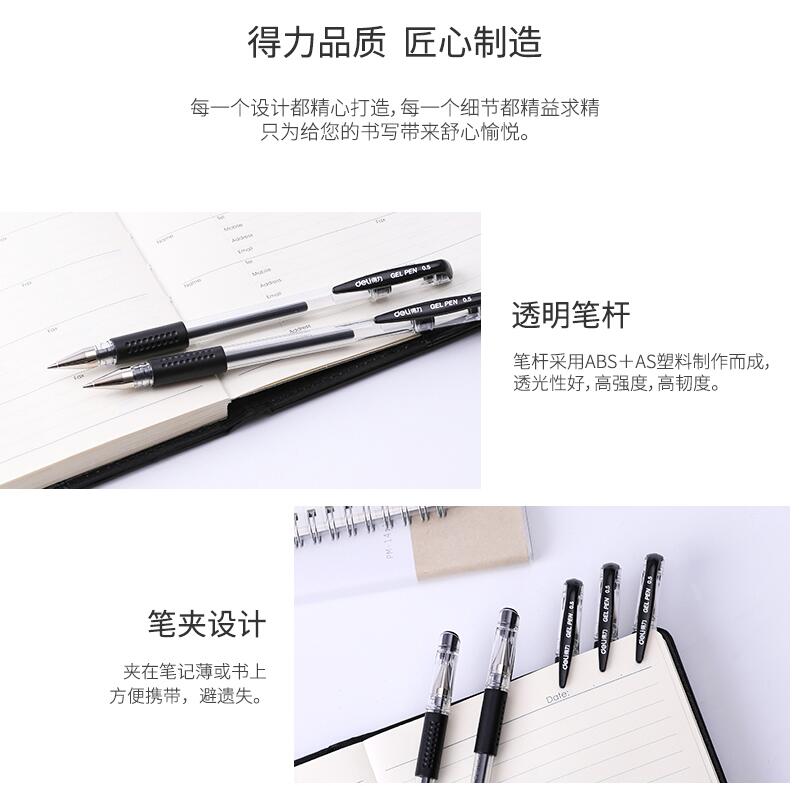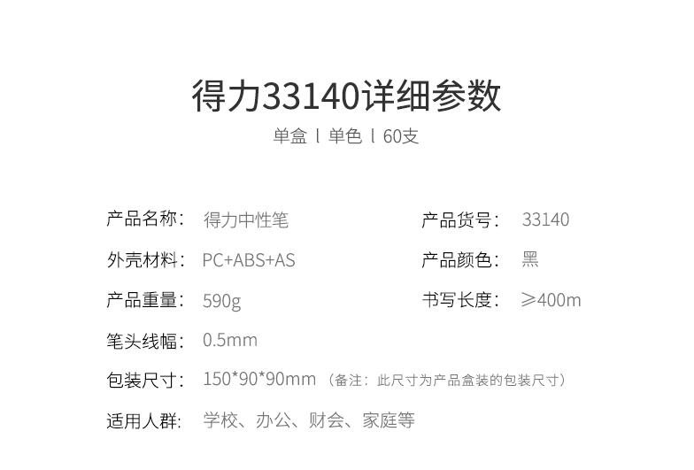 得力文具33140 中性筆學(xué)生考試量販?zhǔn)胶诠P水筆碳素筆0.5mm 60支裝